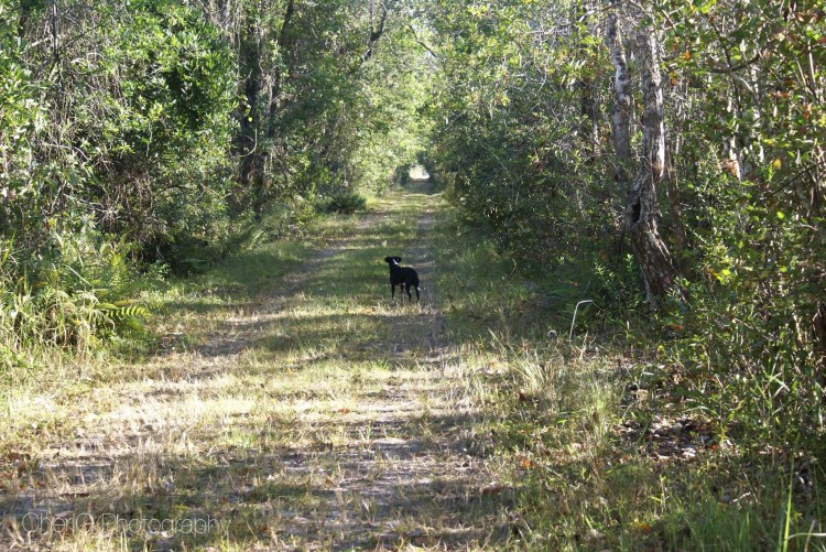 herd of cattle, but is now grown over by tall grass. After traveling through the rutted path caused by the ranch hands, you pass through another metal gate to a long, pathway lined by trees and swampland on either side. The trees create a canopy that blocks the worst of the wind in cooler weather and provide shade in the hotter months, and had been one of A’s favorite routes. It gave us both a sense of peace being there, as we rarely encountered anyone else. I often referred to it as “the road less traveled”, in reference to Robert Frost’s poem The Road Not Taken.
