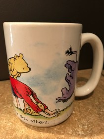 While my husband didn’t have an unhealthy attachment to his coffee mugs, we each had a few that we called our own, the ones that fit our hands comfortably, reminded us of a favorite trip, or held the “right” amount of coffee. Personally, I have about 3, which works out well with the dishwasher schedule. And while the dishes were dirty this morning, I suppose I could have taken out one of “my” mugs and washed it before grabbing my cup of coffee this morning, but I didn’t.