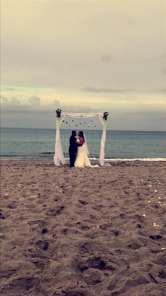 day, but it was more overcast than anything, although that may not have been a bad thing as the wedding was held on the beach. In July. In South Florida. It was an evening wedding, so that also helped, but it was definitely a bit still and muggy. We dealt. No big deal. (Except for my older brother who informed me that my other two children need to have Winter weddings.)