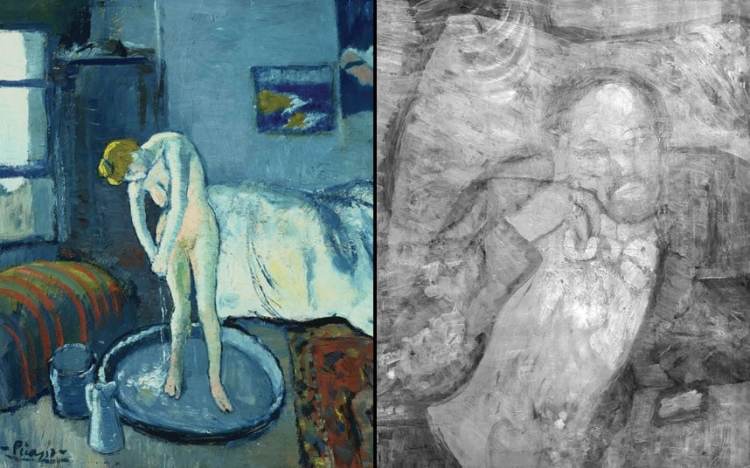 To me, it’s more like an old painting.  Perhaps an old da Vinci, or Picasso’s The Blue Room where art conservationists discovered an older painting hidden beneath a more recent one.  (The cover photo for this post is both the original painting and what was found beneath.)   Artists often reused old canvases for what they viewed as “failed” pieces, when a painting didn’t work out the way they had intended.  Or simply out of necessity when supplies were limited.