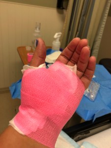 Eventually, after an examination, x-rays, stitches, and a tetanus shot, I was sent on my way, my hand wrapped in colorful gauze and tingling from the numbing agent they injected me with.